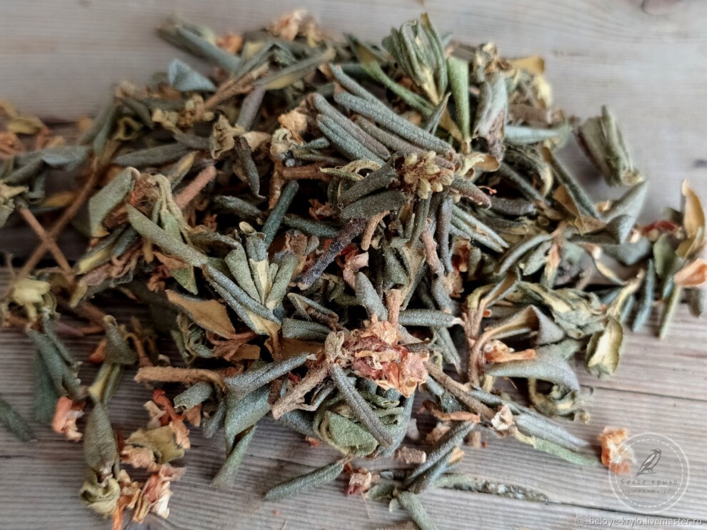 Саган-дайля (Рододендрон Адамса). Чудо природы растущее на склонах Алтая, Тянь-Шаня и Саянских гор. Рододендрон Адамса, известный как саган-дайля ("Белое крыло"), — это шикарный елово-брусничный аромат, вкус и огромная польза. Ведь это целая мини-лаборатория природных полезных веществ. И он действительно "окрыляет" весь организм наделяя его силой и здоровьем! И как вишенка на торте он украсит собой наш Иван-чай придав изысканности вкусу и умножив пользу для организма!*